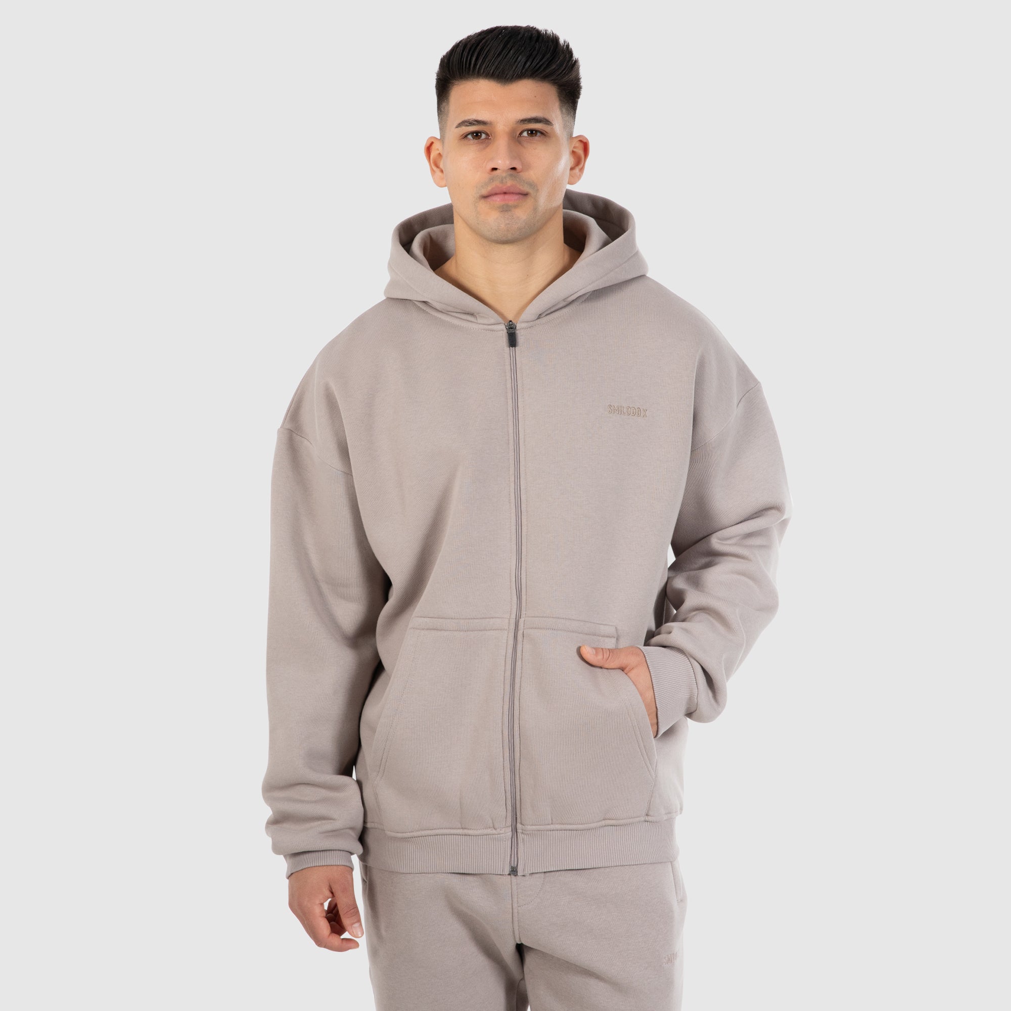 Der Smilodox Herren Zip Hoodie vereint sportlichen Stil mit maximalem Komfort. Der lässige, bequeme Schnitt und die große Kapuze machen ihn ideal für entspannte Tage und sportliche Aktivitäten. Der eingestickte Smilodox Logo-Schriftzug auf der Brust verleiht dem Hoodie eine hochwertige Optik, während der ton-in-ton farbige Reißverschluss den Look dezent und modern hält. Die aufgesetzte Kängurutasche bietet praktischen Stauraum und rundet das Design funktional ab – der perfekte Begleiter für Freizeit und Alltag.